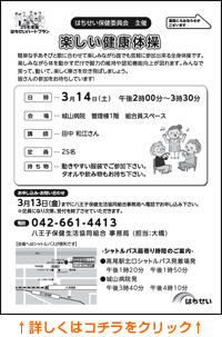 - 日 時 3月の土曜日(詳しい日程は未定)午後1時30分〜3時30分