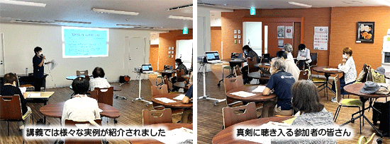 「入院から在宅まで」と題して、日頃患者さんの入院から退院までを支援している城山病院医療福祉科(相談室)小林紀子さんが、相談室の役割、日頃寄せられる相談ごとなど、医療機関との連携など実例を踏まえてお話しました。参加者の方からは、「聞いておいて為になるお話をたくさん聞くことが出来ました」と嬉しい感想をいただきました。