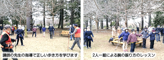 近年すっかり気軽に楽しめるスポーツとして定着した感のあるノルディックウォーキング教室が、都立陵南公園にて東浅川支部の主催で開催されました。当日は肌寒さを感じるあいにくの空模様でしたが、早春の陵南公園で元気いっぱいに楽しく歩きました。